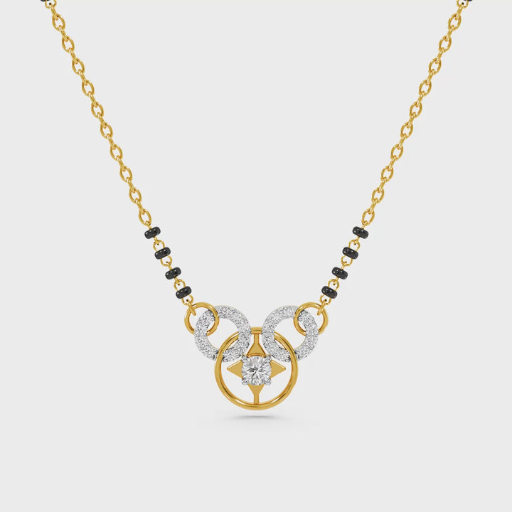 An intricate circular design with interlinked stone-studded loops and gold detailing. Bold yet balanced, it delivers standout sparkle with a refined, fashion-forward edge.